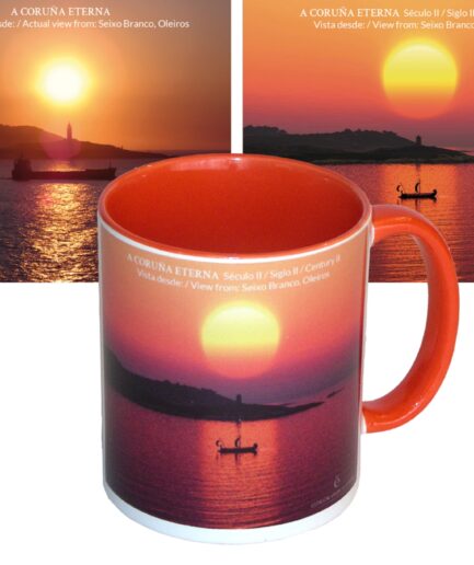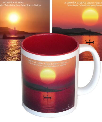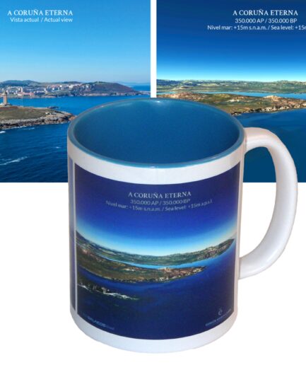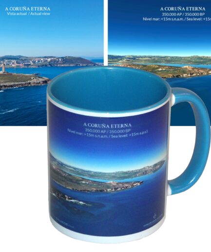 Taza azul Vistas actual y virtual de la Torre de Hércules y el Monte S Pedro en el Siglo II HQ