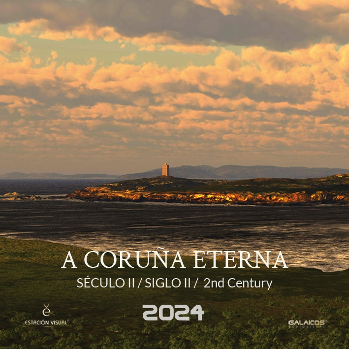 Vista de la Torre de Hércules, siglo II. Nubes color naranja
